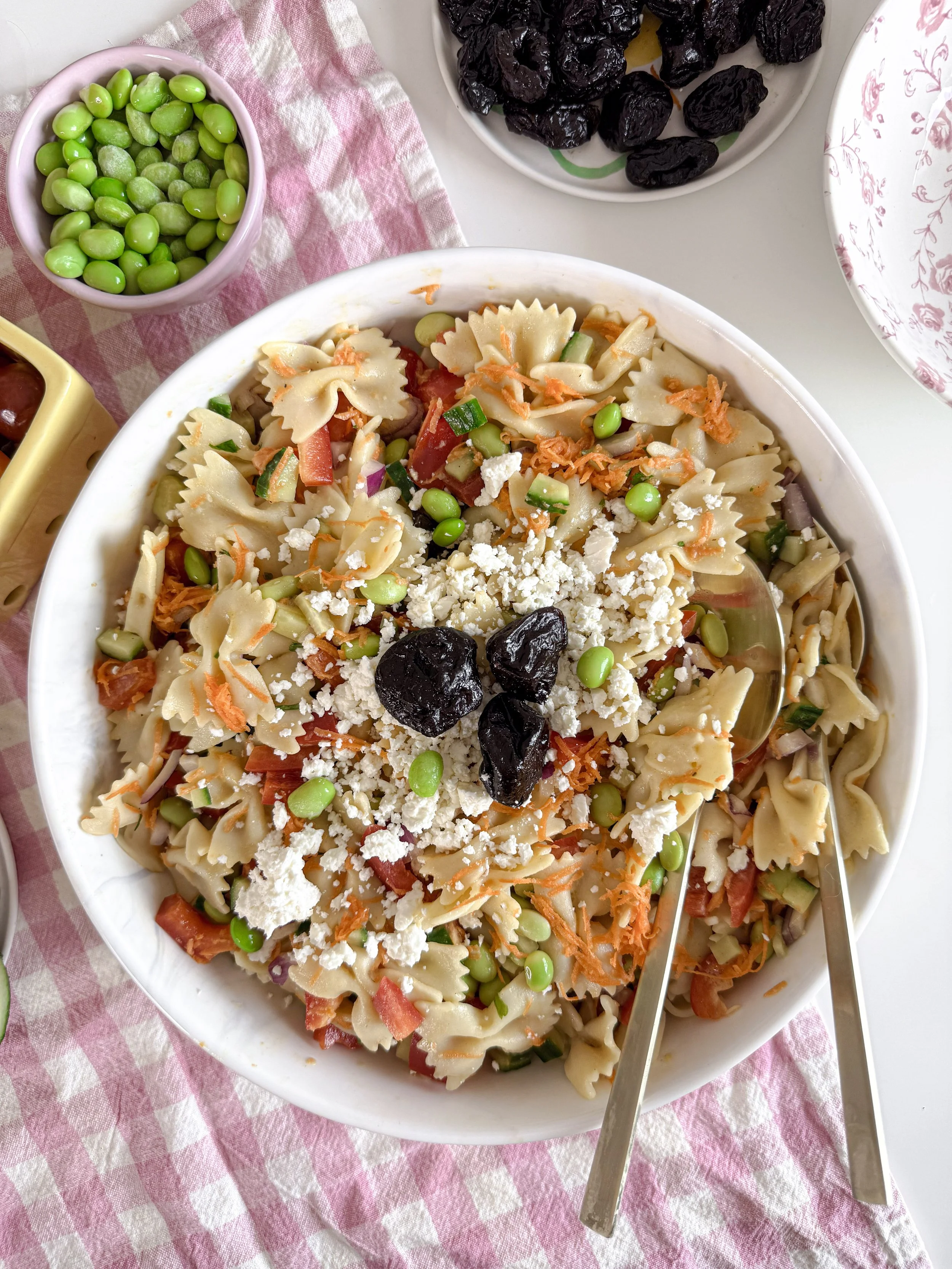 Colorful Farfalle Salad with California Prunes, Edamame & Maple Mustard Dressing