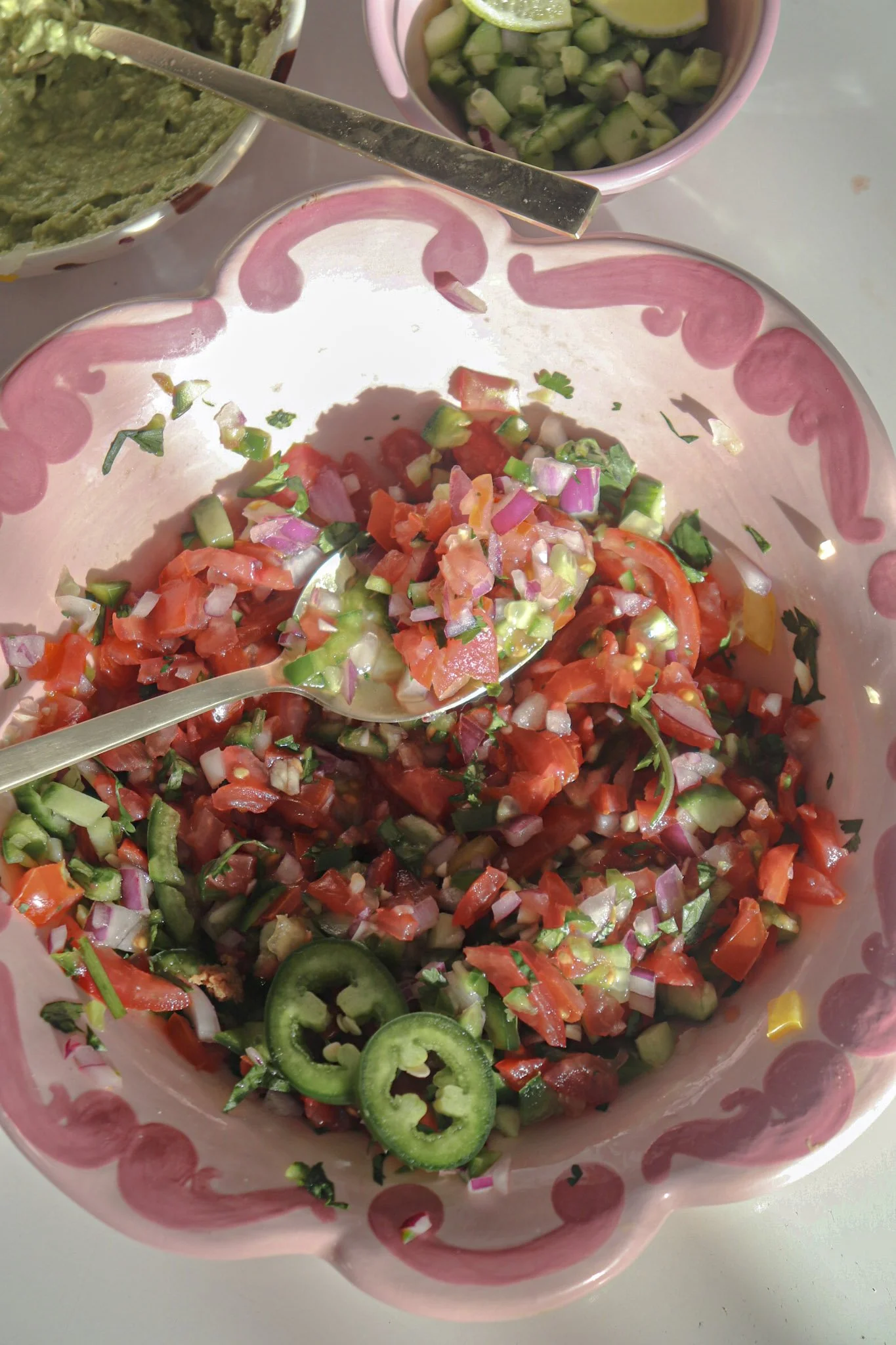 Mélanger tous les ingrédients du pico de gallo dans un bol.